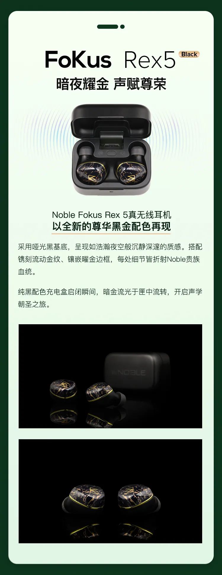 Noble 自推出以來(lái)便備受贊譽(yù)的真無(wú)線耳機(jī) Fokus Rex5 ,如今以全新黑金配色耀目再臨!